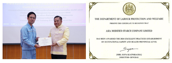 1. Thailand Labour Standard (TLS 8001) Certificate of Honour: For maintaining the Thai Labour Standard for 10 consecutive years.